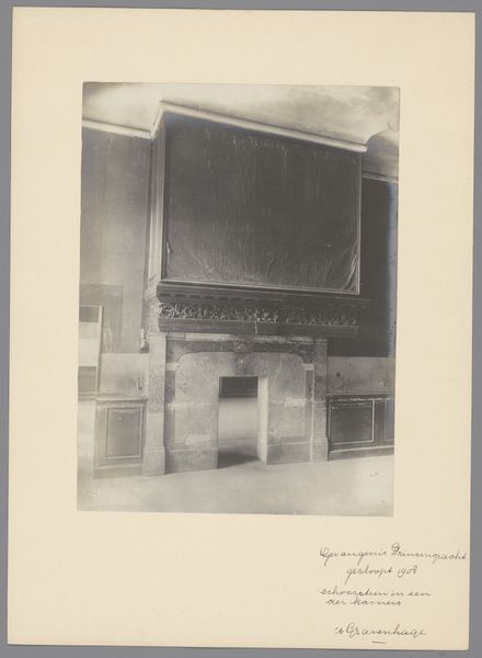 This photograph captures a detail of the chimney in the former Oude Zijds Huiszitten Almoseniershuis, or Old Side Alms House, in Amsterdam. Taken by an anonymous photographer working for Monumentenzorg, the Netherlands heritage agency, it presents a moment frozen in time, likely dating from August 1949. The image offers a glimpse into the architecture and interior design of a space intended for the poor and vulnerable. The ornate carvings and floral wallpaper create a tension between the aesthetics of wealth and the building's function as a place of refuge for those with little material wealth. Consider how the image and its institutional creation reflect a concern for preserving cultural heritage, and how even spaces dedicated to poverty are deemed worthy of documentation. It invites us to reflect on the stories embedded in the walls of such places.