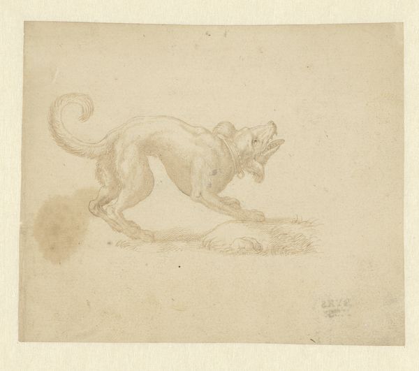This drawing, “En sammenbøjet figur,” was made by Nicolai Abildgaard, likely in the late 18th century, using graphite on paper. The artist has used the simple materials of pencil and paper to create a quick sketch with an immediacy that is captivating. The figure is rendered with loose lines, capturing its essence rather than precise details. It’s a study in form and posture, and the paper itself becomes an active participant in the artwork, with its texture and tone adding depth. It’s fascinating to consider the labor involved in acquiring and preparing the materials, especially during Abildgaard's time. The production of paper and graphite, while seemingly basic, involved specialized skills and industry. Abildgaard may have been reflecting upon the subject, and we may not have understood it without the art. The artwork’s true essence lies not just in the final image, but also in the materials, the process, and the context in which it was created.