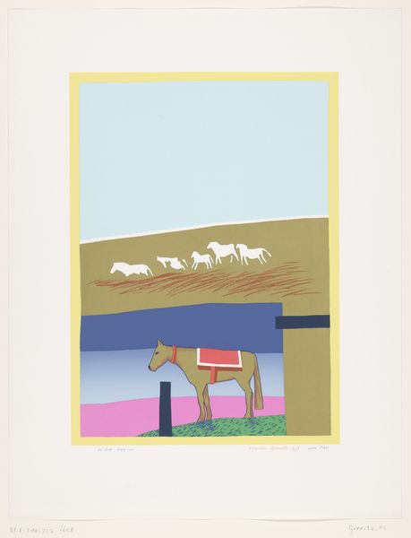 Harrie Gerritz made this print, Klein maanlicht avontuur, which translates to 'Small Moonlight Adventure', at some point during his career, but I can't tell you exactly when. I love how Gerritz simplifies the landscape, stacking shapes and colors like building blocks. The textures aren't really there in a tactile sense, but the colours create a certain flatness that makes me think about how we construct our own sense of depth. Check out the pink line going through the middle of the brown block. It's so delicate and unexpected, like a secret path only visible in the moonlight. It contrasts nicely with the simple shapes and blocks of colour, but also sort of pulls the whole scene together and creates a strange and wonderful harmony. You could compare this to work by someone like Josef Albers, with the blocks of colours creating depth. But, ultimately, this print embraces an ambiguity that leaves space for multiple interpretations.