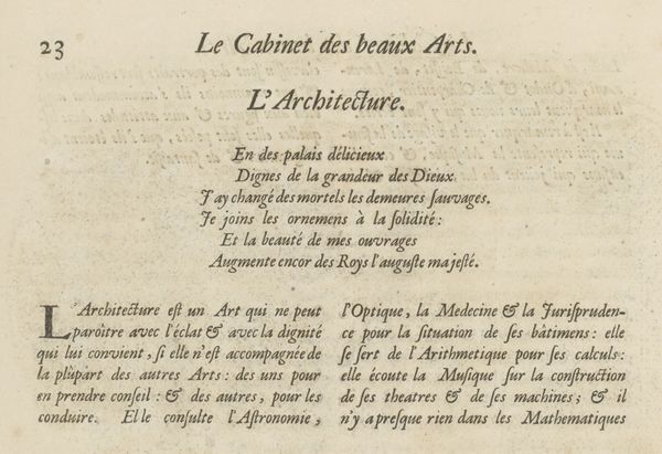 This page, titled "Poetry" from "The Cabinet of the Fine Arts" was created by Charles Perrault. Here, the laurel wreath emerges as a potent symbol. Historically, it has signified triumph, success, and poetic genius, dating back to ancient Greece, where laurel crowned victors and poets alike. We find echoes of this tradition throughout history, from Roman emperors to Renaissance artists, each adopting the wreath to evoke authority and excellence. Yet, its meaning shifts. Initially a symbol of earthly achievement, it morphs into a signifier of divine inspiration. Think of Apollo, the god of music and poetry, forever adorned with laurel. Psychologically, the laurel wreath taps into our collective desire for recognition and immortality. It speaks to our innate drive to create, to excel, and to leave a lasting mark. The wreath is more than mere foliage; it is a powerful emblem that engages viewers on a deep, subconscious level, promising glory and enduring legacy. This symbol constantly resurfaces, evolving, and taking on new layers of significance.