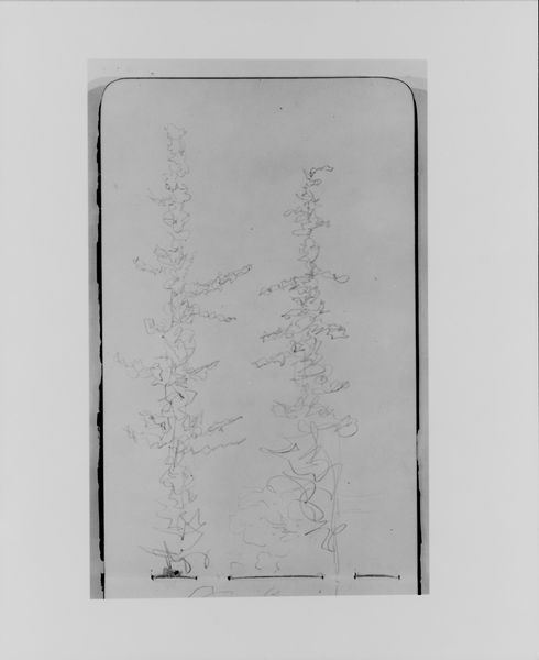 Albert Bierstadt quickly captured these landscape views after leaving Seattle with graphite on paper. The soft give of the paper, coupled with the yielding quality of graphite, allowed Bierstadt to rapidly fix his impressions. The immediacy of the medium suggests an artist working en plein air, trying to document a fleeting landscape as it passes. The quick notations of landforms and possible annotations capture the pace of modern life. During the 19th century, sketchbooks like this one became common tools for artists traversing vast distances by rail or ship, like Bierstadt did while touring the American West. As mass-produced items, they democratized artistic practice, making art supplies more accessible and affordable. By focusing on the materials and the act of making, we can appreciate how even a humble sketchbook page connects to broader patterns of industrial production and social experience.