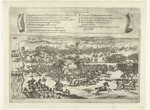 Jean Perrissin created this print, Beleg van Poitiers, 1569, documenting the siege of Poitiers during the French Wars of Religion. These wars were a bloody struggle between Catholics and Protestants, known as Huguenots, tearing apart French society. Perrissin’s detailed engraving depicts not just a military event, but also a cultural and religious clash. Consider the layers of identity at play here: religious affiliation, social status, and regional allegiance, all colliding amidst conflict. This siege was more than just a battle; it was a moment where personal and communal identities were forged and tested. The black and white print throws the stark realities of war into sharp relief, devoid of any romanticism. It is a study in contrasts - the order of the besieging armies versus the chaos within the city, echoing the broader societal rupture of the time. Perrissin invites us to reflect on how conflict shapes identity and how individuals and communities persevere amidst great upheaval.