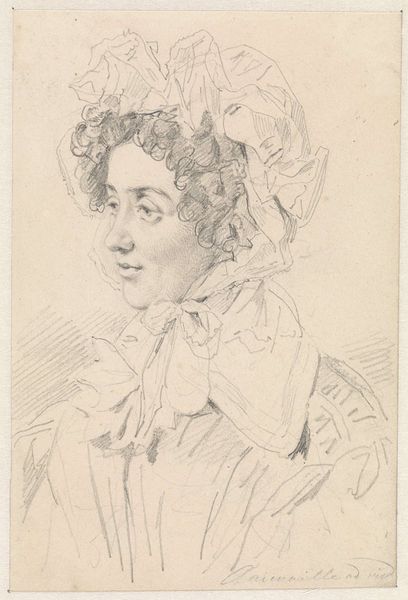 Curator: Here we have "Woman coiffed as a sultana, from 'Several heads in the Persian style'" by Stefano della Bella, dating from around 1649-1650. It's an etching, part of the Baroque period's fascination with exoticism. Editor: It has this melancholic feel, doesn't it? Like a captured bird. The delicacy of the line work, especially in the hair, is just beautiful, yet it's all contained within this tight oval shape that sort of squeezes all emotion down. Curator: The "several heads" series was itself produced and sold as unbound leaves. Stefano della Bella worked in printmaking and small works primarily, providing artworks to consumers looking for a less financially ambitious art. Editor: And look at the labor involved in such fine detail achieved through etching—it’s incredible that such elaborate adornment could come from, practically, mass production of images. Are those supposed to be grapes adorning her hair? Curator: Likely mimicking pearls, indicative of both luxury and the artistic trend toward Orientalism prevalent at the time. These etchings provided the rapidly rising middle class in Europe images to reflect upon ideas of privilege, culture and worldliness. The materials were also easily accessible to those purchasing the works; in effect, the consumption mirrors the subject it represents. Editor: Funny, isn’t it, how art imitates wealth, then the reproduction democratizes that image, transforming the art once again. She doesn’t quite have the haughty air I’d expect; rather there’s an intimate and soft wistfulness about her, made more pronounced by the detail that Della Bella captured in the etching. What would she think, I wonder, seeing her portrait reproduced ad infinitum, floating on phone screens, centuries later? Curator: Perhaps she would finally feel less constrained by the expectations of her class. Editor: Or utterly bemused by the fact that a digital copy of herself would find its way to the pockets of millions across the globe, who will look and briefly feel like her world is momentarily theirs.