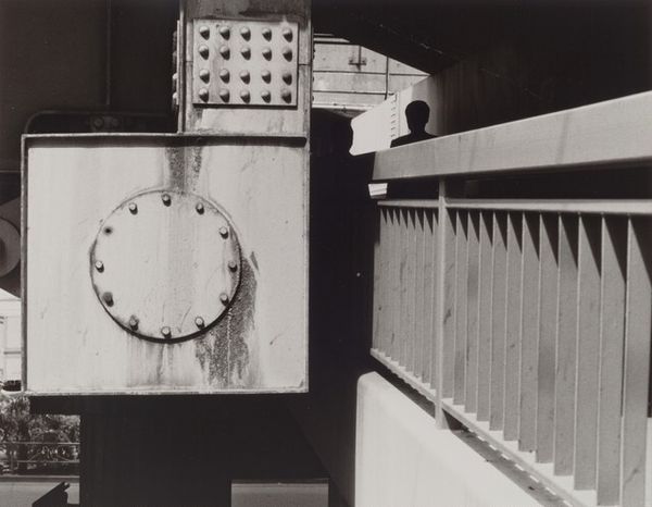 Editor: Looking at Nathan Lerner’s “Eye on Window” from 1943, the first thing I notice is the way the photograph itself almost feels like an artifact. The subject matter – a painted eye on a cracked window – along with the grainy black and white tones gives this feeling of a relic of some kind. How would you approach an interpretation of this image? Curator: The cracking in the glass really emphasizes the fragility, doesn't it? And consider the image itself as a material object: photographic paper, emulsion, the specific chemical processes used in 1943. Each choice, each element of production leaves a mark. Do you think that sense of the relic might be linked to wartime anxiety influencing materiality of daily life? Editor: That’s interesting – I hadn’t thought of it like that! So, the wartime context could have directly impacted the materials and maybe the subject matter too? Was Lerner using readily available materials? Curator: Absolutely. Think about material scarcity during wartime. What was available, what was considered valuable, and how artists adapted. Perhaps the cracked window and aged appearance speak to resourcefulness – or perhaps, even, a subtle critique of wartime waste and excess depending on the lens through which Lerner approached production and the image's dissemination. Editor: That makes so much sense! I was focusing on the symbolic eye, but thinking about the materiality gives a completely different reading. The photograph’s context is also what gives meaning to the relic. Curator: Precisely! Focusing on the material aspects pulls art away from pure symbolism into real life and social systems. It’s the labor, consumption, and everyday lives embedded in creating art we are studying, not just aesthetic ideas. Editor: I will look for those connections of how the art’s cultural background is tied into materials used from now on, it adds a new layer of understanding. Curator: It's a productive lens. By examining art production and context together, you can begin to challenge conventional thoughts.