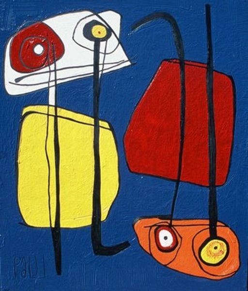 "For David Fernández" by Joan Miró presents us with a serene blue canvas populated by a playful arrangement of shapes and lines. The composition is immediately striking, inviting the eye to dance across the surface in a seemingly spontaneous yet carefully orchestrated manner. Miró’s use of bold black lines and vibrant colors such as red, yellow, and blue creates a visual language that feels both primal and sophisticated. These elements aren’t simply decorative; they act as signifiers within Miró’s personal lexicon, hinting at deeper meanings while resisting any fixed interpretation. The biomorphic forms and abstract shapes evoke a sense of the subconscious, a realm where symbols float freely and narratives remain open-ended. In this way, Miró destabilizes traditional artistic conventions, inviting viewers to engage in a dynamic process of interpretation. The flatness of the canvas and the deliberate arrangement of forms emphasize the artwork's construction, reminding us that art is not just a reflection of reality but a constructed reality in itself.