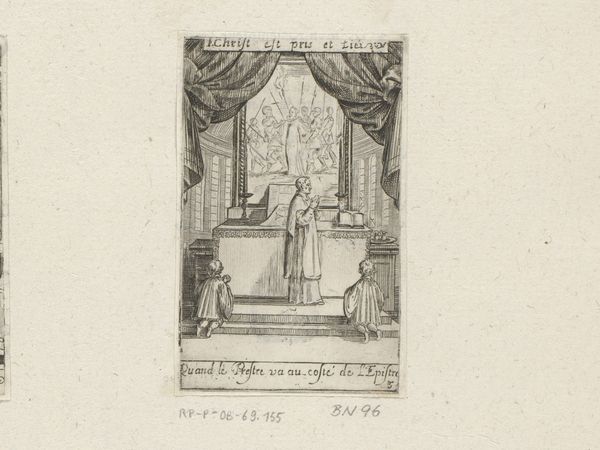 This is Sébastien Leclerc’s etching, "Priest with two altar boys before an altar," dating back to the late 17th century. Leclerc was working during a time when religious and political landscapes were deeply intertwined, especially in France. Through the figures of the priest and altar boys, Leclerc engages with themes of religious authority, innocence, and hierarchy. The small figures, dwarfed by the altar and priest, evoke a sense of both reverence and vulnerability. The image is a study of the way religious institutions shape individual experience and perception. Leclerc highlights the structures of power inherent in religious practice. The delicate lines of the etching invite us to reflect on the intricate ways faith intersects with identity, power, and the human condition. Leclerc prompts a consideration of how religious rituals shape our understanding of ourselves and our place in the world.