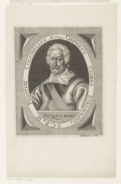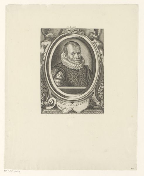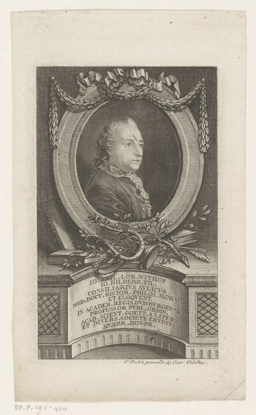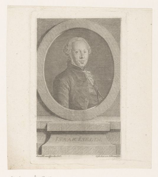 Michel Aubert created this portrait of Jacobus I using etching and engraving techniques sometime in the first half of the 18th century. These printmaking methods involve meticulously incising lines into a metal plate, which is then inked and pressed onto paper. The fine lines and cross-hatching create a range of tones and textures, capturing the details of Jacobus I's regal attire and dignified expression. The choice of etching and engraving speaks to a broader social context of reproduction and dissemination of images during this period. These techniques allowed for relatively quick and inexpensive production of multiple copies, making portraits accessible to a wider audience beyond the elite. The labor-intensive process, requiring skill and precision, highlights the value placed on craftsmanship in the creation of reproducible images. This engraving straddles the line between fine art and craft, demonstrating how technical skill could serve both artistic expression and commercial purposes.