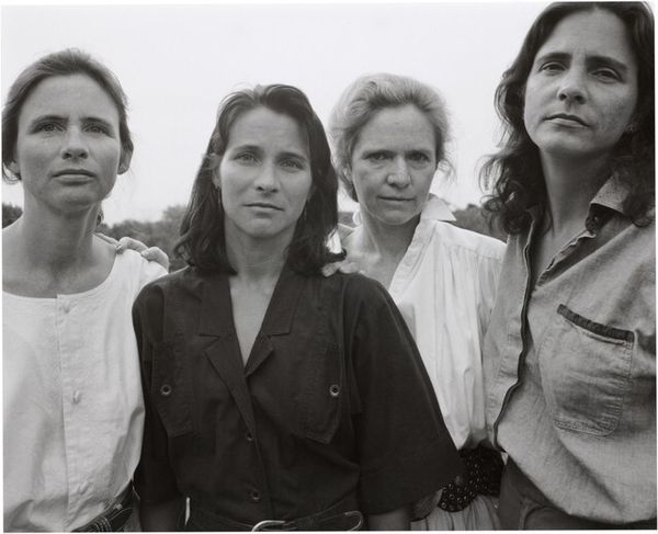 Nicholas Nixon made this photograph of the Brown sisters at Wellesley College using a large format camera. It's black and white, with a tight tonal range. Look at how the light falls on their faces, it's a study of the way the character is etched by time. The surface of the photograph itself feels smooth, almost like skin. The sharpness of the image and the scale of the print, the almost 8x10 dimensions gives an intimacy and vulnerability to the subjects. The contrast in their clothing and accessories, like the elder sister's white blouse and the necklaces of two of the other sisters is just remarkable. I'm struck by the way that one of the sisters is looking out of frame, and I can't help but wonder what she's thinking. Thinking about other artists who make photographic series over time, like say, Sophie Calle, you can see how this series is also about time, about the way time changes us, and about the way we stay the same.