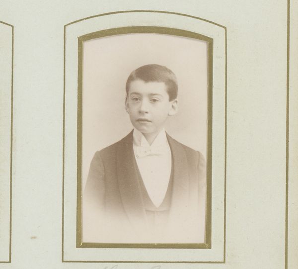 Editor: Here we have "Portret van een onbekende jongeman," or "Portrait of an Unknown Young Man," created between 1890 and 1907 by Atelier William. It's a gelatin silver print photograph. I'm struck by the subject's very direct gaze. How do you read this image, considering the period in which it was created? Curator: What interests me most about portraits like these is what they conceal as much as what they reveal. While we can focus on the sitter’s attire, the photographer's skill, we must also recognize the cultural and socio-economic dynamics at play. Who was this young man? Why was this portrait commissioned? His class, his aspirations? Editor: It's interesting to think about what's unsaid. I mean, it seems like commissioning a portrait would signal a certain level of privilege. Curator: Exactly. Photography, even in its earlier forms, allowed for a wider segment of the population to participate in image-making, but class and social structures would still be present. Consider, too, the performative aspects of posing for a portrait during this era, and how the sitter and photographer collaborated to create a specific presentation of self. To me, these are all stories interwoven into this quiet image. It's an era defined by evolving social structures, where images become a language defining individuals within society. What do you make of his expression? Editor: It's so hard to read. There's a seriousness, almost a slight apprehension, which might suggest an awareness of how he's being presented to the world. Curator: Yes, I see that too. Perhaps what we see is a tension between societal expectations and personal identity, subtly captured in his gaze, speaking volumes about the complexities of youth and societal expectations at the turn of the century. Editor: I’ll definitely view these portraits differently from now on, keeping in mind these issues of class and identity, especially in photographic representation.
