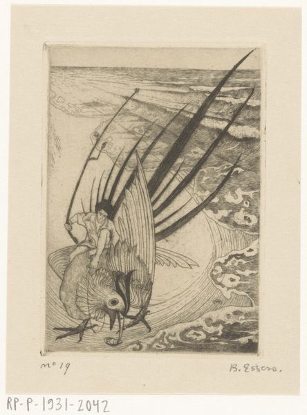 Charles Frederick William Mielatz created "In the Meshes," an etching, sometime between the late nineteenth and early twentieth century. The artwork depicts fish swimming in what appears to be a net. Mielatz, active in the New York Etching Club, was part of a broader artistic trend celebrating everyday scenes and the natural world. This print, with its focus on aquatic life, might reflect a growing interest in ecological themes. In its time, the etching participates in conversations about our relationship with the environment. The image uses the visual metaphor of a fishing net to evoke themes of captivity and fragility. Is it a commentary on industrialization's impact on nature? By examining exhibition records, artists' correspondence, and period publications, we can understand better the social and institutional contexts that shaped Mielatz's artistic vision.