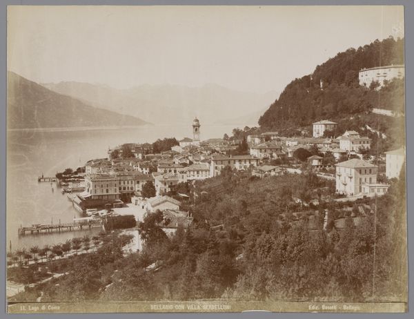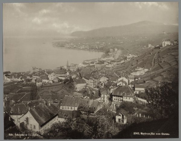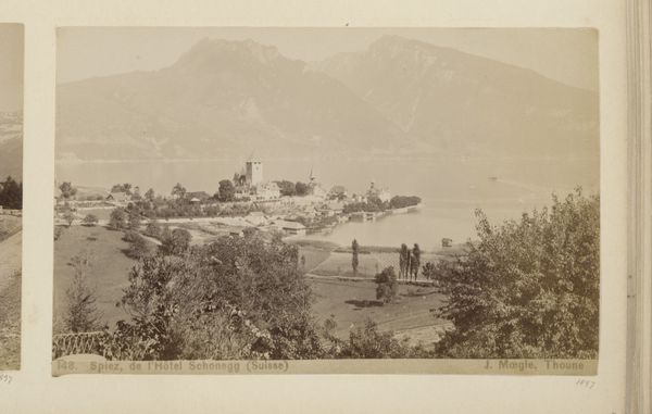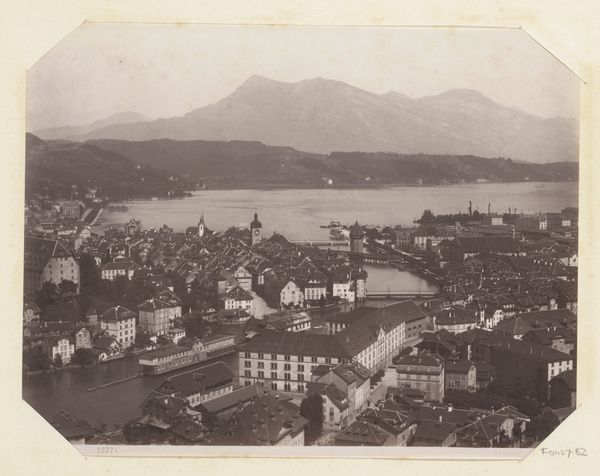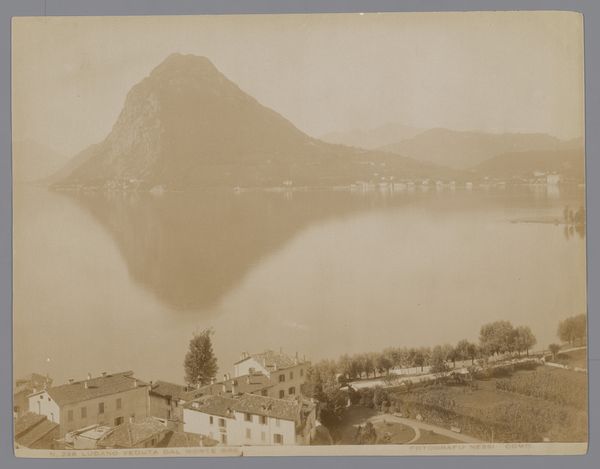 Giorgio Sommer made this albumen print of Lugano and its lake in the late 19th century. The commercial distribution of landscape photographs in the 1800s gave rise to tourism, and this image captures the picturesque beauty that drew visitors to the Swiss-Italian border. Sommer was based in Naples, but sold photographs of other Italian regions. This view emphasizes the orderly arrangement of the city, with its buildings nestled between the lake and the dramatic mountains. The formal gardens in the foreground offer an idealized vision of nature, tamed and shaped for leisure. Understanding the historical context of this image requires looking into the rise of tourism and the development of photography as a commercial enterprise. Tourist guidebooks, travelogues, and other sources can help us understand how places like Lugano were marketed and consumed. These factors have shaped the popular perception of this region, transforming it into a destination.