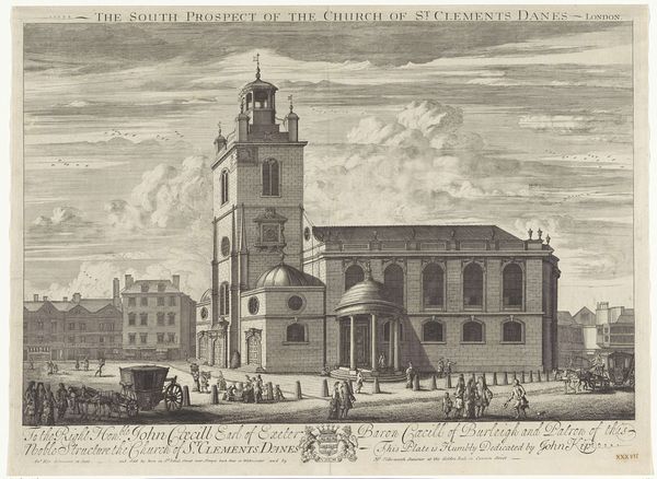 Caspar Jacobsz. Philips created this print of the Lutheran Church in Beverwijk, in 1778. It's made using an engraving technique, where lines are cut into a metal plate, which is then inked and pressed onto paper. Look closely, and you’ll notice the image is built from a network of fine lines. The varying density of these marks creates tone and texture, giving depth to the architectural forms. Engraving was a skilled craft, demanding precision and control. The engraver's hand shaped the image, translating the scene into a language of line. Prints like these were essential to the circulation of knowledge and ideas. They allowed images of buildings, landscapes, and events to be disseminated widely. This print serves not only as a representation of a specific place, but also reflects the social and cultural values of the time, where the visual medium documented the architecture and community life for a growing public audience. It prompts us to consider the labor involved in its production and the purpose it served in society.