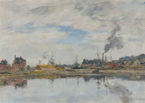 Tina Blau, an Austrian landscape painter, painted this view of a canal near Amsterdam. In the late 19th century, as more women gained access to art academies, there was a slow shift in the art world. Blau, initially barred from the Vienna Academy, later gained recognition, navigating the male-dominated art scene of her time. The image captures a serene yet industrial landscape of the Netherlands. The muted palette and overcast sky evoke a feeling of quiet introspection, characteristic of the artist's style. Blau's work often focused on capturing the emotional qualities of nature. Here, the artist seems to explore the relationship between nature and industry. The figures on the canal bank add a human element to the scene. Blau's work reflects the changing role of women in the art world and society. She not only pursued a career as an artist, but also captured the world around her with sensitivity and skill. The image reflects a period of industrial expansion while retaining a sense of natural beauty and personal reflection.