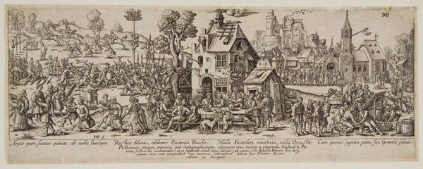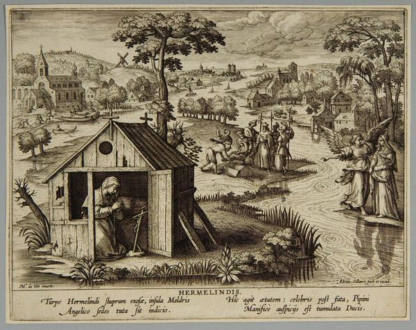 Editor: Here we have Johann Sadeler's "Henoch," an engraving. I find the rendering of everyday life intriguing, especially combined with the biblical subject. What can you tell me about the context of its production? Curator: Consider the means of production: engraving allowed for mass dissemination. The labor involved in producing these prints made religious imagery accessible, acting as a form of cultural currency. How might this impact our understanding of its subject matter? Editor: That's a great point! So it’s not just about the religious narrative, but also about how art was made and consumed at that time. Thanks, that's insightful. Curator: Indeed, thinking about the process changes how we see the image.