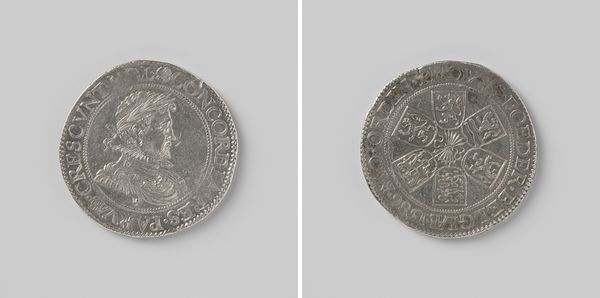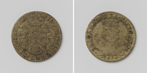 Editor: This engraved metal relief, dating back to 1713, depicts "Maximiliaan Emanuel II, keurvorst van Beieren." The craftsmanship is amazing, but what I immediately notice is the detail despite the coin's weathered appearance. Curator, how might its context influence our understanding of this piece? Curator: A piece like this functions as a potent form of propaganda. Currency often served as a means of disseminating the image and authority of rulers. Consider the socio-political environment of 1713. What message was the Bavarian Electorate trying to project? What purpose did it serve within Bavaria? Editor: Well, seeing as how it’s an image of nobility on a coin, I imagine it aimed to solidify their authority through something that was so commonly used in everyday life. Is that sort of visual tactic common for this period? Curator: Exactly! And it was incredibly common. The Baroque period was marked by grand displays of power, often using art to impress and control. How might the deliberate creation and distribution of such an image—essentially placing the ruler’s face in everyone's pocket—impact their subjects' perception of power and governance? Editor: I suppose it was unavoidable! A constant reminder. I hadn’t considered just how purposeful even mundane things like currency were back then, and even now. Curator: Precisely. This isn’t just money; it’s a carefully constructed piece of political imagery, shaping public opinion. Seeing the political strategy, the act of minting, reveals more than just the surface image. Editor: This makes me see everyday art, even coinage, with totally fresh eyes!