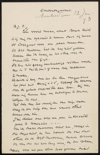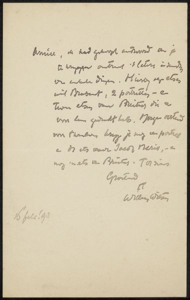 This letter was written by Willem Witsen on paper in 1900. The looping cursive feels intimate, doesn't it? The pen strokes vary in weight, creating moments of dark intensity and light delicacy. For me, that’s where the magic of the piece lies, right there in the process of writing. Look closely at the way Witsen forms each letter. Some are rushed, almost collapsing into each other, while others stand tall with a confident flourish. There's a real sense of energy in the way he moves across the page. See that "W.W." at the bottom? It’s almost like a signature but feels more like an extension of the letter, a final flourish. Witsen's letter reminds me of Cy Twombly's scribbled paintings, where the act of writing becomes a kind of drawing. Both artists embrace the messy, imperfect, and deeply human quality of mark-making. Art isn't about perfection; it's about capturing a moment, a feeling, a thought in all its messy glory.