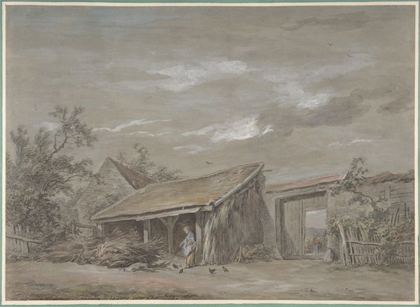 Curator: Here we have Henry Ossawa Tanner's "The Good Shepherd," dating circa 1918. Editor: It's bathed in such a warm, earthy light, isn't it? Like a memory half-remembered. The color palette leans towards those muted yellows and greens... creates such a serene, dreamlike state. Curator: Indeed. The composition is also worth noting: the strong horizontal of the building provides a solid grounding, against which Tanner layers brushstrokes to build atmosphere and suggest detail. Notice the subtle texture achieved through impasto techniques. It's this deliberate material presence that enhances the symbolic reading. Editor: Symbolic, definitely! It's like this humble, very human scene is actually a coded narrative...that shepherd tending to his flock next to the cozy homestead is really about a greater calling, an enduring spiritual promise. And the paint, oh my, it's slathered, dragged, dabbed—all these layers of materiality almost become a metaphor for the layers of meaning in the image. Curator: Precisely. Tanner uses formal elements to reinforce his themes. He suggests realism rather than precisely defining forms; this adds to the painting’s ethereal, almost otherworldly feel. Note also how he avoids stark lines in the landscape, inviting meditation. The building's solid form represents refuge and security, elements further explored throughout Tanner’s oeuvre. Editor: He masterfully blurred the edges here, huh? Kind of the way the edges blur when you're feeling hopeful. You’re wrapped in something comforting and enduring and the painting seems to offer that kind of refuge, especially with those uncertain forms emerging from the paint itself...beautiful. Curator: Well said, it encapsulates the essence of "The Good Shepherd"—an interplay of formal construction and evocative visual poetics. Editor: Leaving us with not just an image, but a lingering feeling, an echo in the heart, yes? I like that a lot.