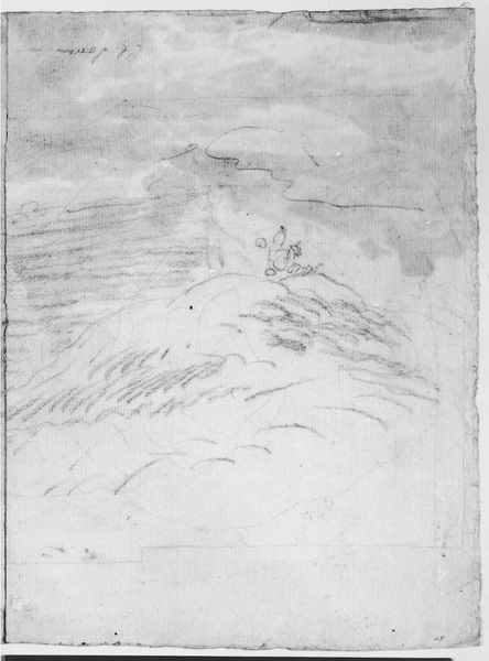 This is John William Casilear's "Study of Mountains and Hills," a graphite drawing, likely from the mid-19th century. The initial impression is one of openness and simplicity. Casilear uses minimal, almost hesitant lines to depict a broad landscape. The composition is sparse, dominated by the gentle slopes of hills and mountains. The formal qualities of the artwork reveal an interest in the structural elements of landscape rather than a detailed representation. Casilear's lines are not used to define edges, but instead to suggest form through hatching and shading. This technique, while simple, invokes a sense of depth and volume across the scene. The stark contrast between the almost empty sky and the textured earth below draws the viewer's eye, creating a sense of scale and distance. There is an underlying structural framework that invites us to consider the basic geometric forms that constitute our perception of nature. Through this reduction, Casilear encourages a deeper engagement with the fundamental elements of the natural world.