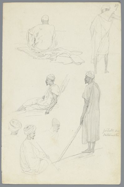 Willem de Famars Testas created this pencil drawing of men in oriental clothing in the nineteenth century. In this sketch, the artist depicted oriental figures, possibly in North Africa, as suggested by the title, but also by the clothes the figures wear. The drawing provides a glimpse into the colonial mindset prevalent in Europe at the time, where non-Western cultures were often romanticized or exoticized. The composition creates meaning through visual codes and cultural references, reinforcing the stereotypical view of the East as a place of leisure and poverty. Orientalism, as Edward Said named it, served to legitimize European colonial rule by creating a binary between the progressive West and the supposedly backward East. Examining the artist's personal history, travel logs, and exhibition records, can further contextualize this artwork and shed light on the social conditions that influenced its creation. The meaning of art is always contingent on social and institutional context.