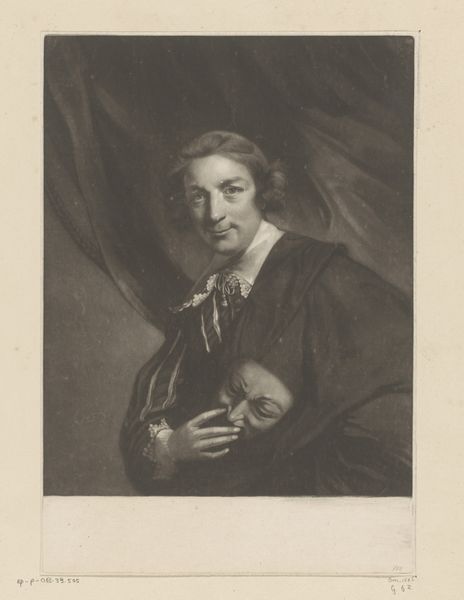 This is a mezzotint self-portrait by Nathaniel Hone, made sometime in the 18th century. Hone lived in a time when artists sought to elevate their social status through their work. Here, Hone presents himself with the accoutrements of a gentleman: a fur hat and a velvet coat, each suggesting a life of comfort and status. This was a deliberate act, given that artists were often seen as mere tradesmen. The gaze is direct, a challenge perhaps, or an invitation. It's hard to tell which without knowing Hone's intentions. This image complicates traditional portraiture, not just because it is made by the artist himself, but because it is also a statement of self-fashioning. It speaks volumes about the artist's desire for recognition and his awareness of how artists were viewed in the social hierarchy of the time. It allows us to reflect on how identity is not just what we are, but what we aspire to be.
