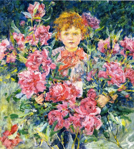 Nikolay Bogdanov-Belsky created this oil painting, "Girl with Peonies," which depicts a young girl seated beside a vibrant bouquet of peonies. These flowers, symbols of wealth, honor, and even romance, carry layers of meaning. Consider how such floral arrangements—echoing those found in ancient Roman frescoes—resurface in Dutch still lifes, emblems of fleeting beauty and earthly pleasures. The peony, like the rose, has journeyed through time, its meaning shifting with each cultural re-emergence. One might find the arrangement reminiscent of similar ones in Renaissance portraits meant to convey fertility or prosperity. The image's power lies in its engagement with our shared memory, evoking a sense of longing and nostalgia. Through the girl's introspective gaze and the luscious blooms, Bogdanov-Belsky stirs deep emotions. The cyclical dance of symbols continues as these motifs resurface, evolve, and take on new meanings.