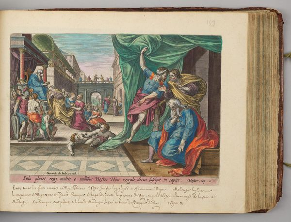 Curator: Johann Sadeler I’s "Gathering of the Manna" presents a vibrant, almost theatrical scene etched onto a roughly 10x14 inch plate. It’s rich with detail and color. What strikes you initially? Editor: It's quite busy, isn’t it? My eye darts around, trying to find a focal point amidst all the figures and tents. There's a sense of abundance, but also a kind of chaotic energy. Curator: This depiction pulls from the biblical story of the Israelites receiving manna from heaven. Sadeler, working around 1600, infuses this divine provision with a very worldly, almost festive atmosphere. Notice how he portrays the figures. Editor: They're definitely not starving! Everyone is quite robust, draped in classical-looking garments. There's a definite idealization here, a sense of abundance and ease that feels…aspirational, maybe even a bit removed from the hardship the story implies. Curator: Precisely. Sadeler cleverly uses classical tropes to elevate the scene, linking it to a broader cultural understanding of providence and divine favor. But, the focus on collection and distribution also speaks to the social anxieties of the time. Editor: So, it’s not just about the miracle itself, but also about who gets what and how they get it? Curator: Exactly. It offers a fascinating glimpse into how religious narratives were visualized and used to comment on contemporary society. Editor: I see it now, that element of social commentary layered within the beautiful artifice. Curator: It's a small piece that prompts big questions, and it's hard not to find your own reflection somewhere in the image.