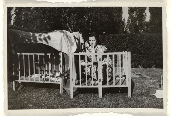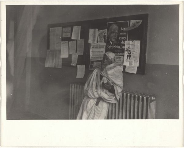 Editor: This is an untitled gelatin-silver print, taken around the 1960s, simply called "Woman's face between blankets." The image feels very intimate and a little claustrophobic. What do you see in this piece? Curator: I see a powerful statement about female vulnerability and the gaze. Think about the 1960s – a time of immense social upheaval, particularly around gender roles. This woman is both hidden and exposed. Her face is partially obscured, yet her eye confronts the viewer directly. Editor: It's interesting you say "confronts." I saw it as more…wary, or maybe even fearful. Curator: Exactly! And where does that fear originate? Perhaps from the societal expectations placed upon women, the constant surveillance, the lack of agency. The blankets could be interpreted as a form of protection, a shield against the outside world, but they are also trapping her. Editor: So, you're saying the photograph becomes a symbol of the constraints women faced during that era? Curator: Precisely. Intimacy becomes a political space. The “private” act of hiding under blankets becomes a public declaration, highlighting the psychological weight of being a woman at that time. This is a poignant image that invites us to consider how social pressures manifest in personal spaces. What do you make of the gaze in contemporary terms? Editor: Now I'm wondering, what kind of gaze am I, the viewer, enacting by looking at this photograph? It feels…complicated. I think I'll be reflecting on this photograph for a while. Curator: Me too. It seems so simple but it speaks volumes.