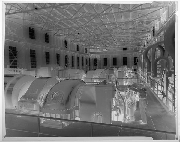 Robert Burian created this gelatin silver print, "Untitled (large empty office)." The photo's black-and-white tones give the office an eerie feel, as though it is a ghost of the labor it once held. The rows of desks, each with its own set of tools, are meticulously organized in a grid, reflecting the logic of mass production. The office space shown here is an archetype of modern work. The materials, from the metal desks to the tiled floors, speak to a standardized, efficient mode of production. The photographic process itself is part of this story. It allowed the artist to capture this space with precision. Burian's image invites us to consider the labor and social context embedded in everyday spaces. It blurs the line between fine art and social documentary.