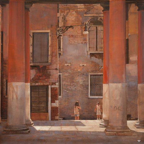 Agim Sulaj painted 'La Partenza', capturing a boy seated in a doorway. The doorway, with its worn arch and crumbling facade, acts as a powerful symbol of transition and the passage of time. Consider how the doorway motif has echoed across various epochs, from ancient Roman arches signifying triumph to Renaissance portals framing sacred revelations. Think of Janus, the Roman god of doorways, embodying beginnings and endings, and his pervasive influence throughout art history. The boy’s posture, head bowed, connects to poses of contemplation or grief found in religious art, suggesting a moment of profound inner experience. This gesture, repeated over centuries, taps into our collective memory, evoking empathy and introspection. The decaying architecture further emphasizes the emotional weight of the image, engaging viewers on a subconscious level. Thus, the doorway and the bowed figure, like echoes of cultural memory, resurface here. Sulaj’s painting weaves a rich tapestry of historical and psychological resonance.