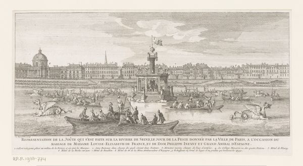 Jacques Rigaud created this print of Paris from Notre Dame toward the Pont de la Tournelle some time in the first half of the 18th century. It gives us an aerial view of the Île de la Cité, capturing the city’s architecture and the bustling activity along the Seine. Rigaud's print reflects the period's fascination with urban planning and representation. The detailed depiction of Paris speaks to the city's growing importance as a center of commerce and culture, but it also reinforces a particular vision of urban order. The inclusion of Notre Dame, and other religious buildings reflects the deep connection between the monarchy and the church. Prints such as this also served a practical purpose, offering those in power, as well as the upper classes, a way to visualize and understand the city. To understand the nuances of this work, we can turn to archival materials, urban histories, and studies of print culture. The image is a reminder that our understanding of art is deeply rooted in historical and institutional contexts.