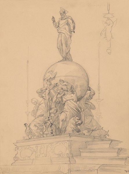 Henryk Siemiradzki created these two sketches of a monument with a figure on a pedestal, surrounded by allegorical figures, sometime between 1843 and 1902. Executed with graphite, the artist coaxes subtle gradations from the humble pencil, sketching freely and expressively, with the allegorical forms emerging from the paper. The monument, with its classical figures, speaks to a culture deeply invested in civic virtue and historical memory. But it’s also an artifact of labor. Consider the work that would go into realizing these sketches as a monumental sculpture: quarrying stone, carving intricate details, and assembling the parts into a cohesive whole. The monument becomes not just a symbol of history, but also of the social and economic systems that make it possible. By focusing on the means of production, we can appreciate how these objects are interwoven with wider social issues of labor, politics, and consumption. This kind of critical view challenges traditional distinctions between fine art and craft, enriching our understanding of the artwork.