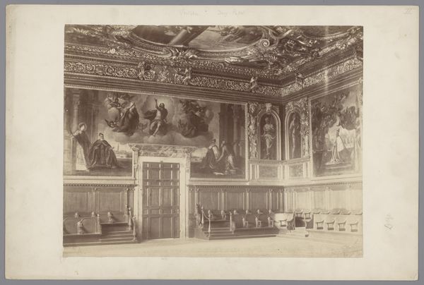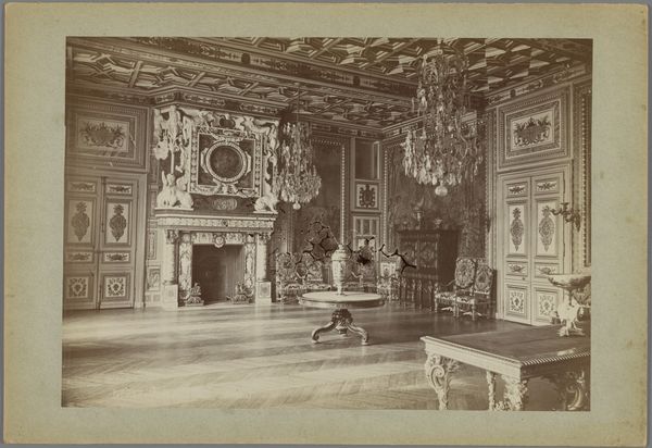 Méderic Mieusement created this photograph of the interior of the Chateau of Oiron in France sometime in the late 19th century. It captures a room embellished with painted panels, ornate carvings and a large fireplace. Mieusement's photograph serves as a historical document of a particular moment in French cultural history. The photograph reveals the ways in which the aristocracy wished to be seen, and the cultural values they wished to project. The artistic references to classical antiquity and the Italian Renaissance, seen in the painted panels, would have signaled the owner's erudition, refined taste, and a sense of continuity with a noble past. The photograph can be contextualized by looking into the history of the Chateau of Oiron itself, its owners, and the social and political circumstances in which it was constructed and decorated. By consulting historical archives, architectural plans, and inventories, a social historian can understand how spaces like this one functioned within a network of social relationships and power dynamics.