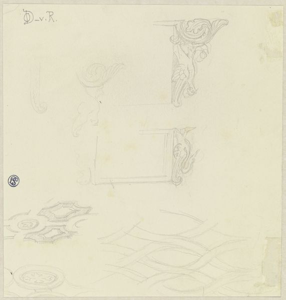 Here is a page of ornament designs by Carel Adolph Lion Cachet. Born in the Netherlands in 1864, Cachet lived through a time of immense social and political change, including the rise of industrialization and shifts in colonial power. Cachet's sketches reflect both his artistic training and his cultural background. The delicate lines and geometric forms speak to a Western tradition of design, while the incorporation of organic motifs hints at the influence of non-Western aesthetics, reflecting the complexities of Dutch colonial history and its impact on artistic expression. Ornamentation often serves as a visual language encoding class, gender, and cultural identity. These designs, though seemingly abstract, carry traces of power dynamics and cultural exchange. Consider how Cachet’s ornamentation invites us to contemplate our own relationship to design and its power to shape meaning, as well as reflecting on the personal and cultural values that shape our perceptions.