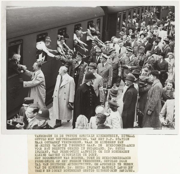 Curator: This arresting image is titled "Jodenvervolging in Amsterdam," documenting the persecution of Jews in Amsterdam between 1941 and 1943. It's held here at the Rijksmuseum. Editor: The stark monochrome and photomontage layout give it a chillingly detached feel, almost like an official record, but the content speaks of human tragedy. Curator: Exactly. Look at the gelatin-silver print technique. This choice of materials highlights the propaganda and bureaucratic nature of the persecution. The photomontage style emphasizes the systematic processing of Jewish citizens as if they were objects, contrasting their humanity. It reminds us that persecution always has its roots in material structures. Editor: Yes, I see the formal juxtapositions amplifying the horror. The visual rhythm created by the rows of trucks, the lines of people being marched, and the arrangement of images evoke a strong feeling of regimentation. The grayscale flattens the space, robbing the subjects of any depth or escape, adding to this sense of oppression. Curator: Think about the labor involved. From the photographer and the developing process to the act of cutting and pasting into a deliberate montage. Even the circulation of this image as a form of documentation speaks to the dehumanizing effect of institutional violence and its systematic application within society. This extends beyond just a captured moment; it involves the manufacturing and dissemination of a particular ideology. Editor: Ultimately, it is a profound reflection on state power, visual strategies and what the human eye and camera were enabled and forced to see. I'm struck how something assembled in this fashion communicates not merely data, but trauma that continues to resonate across decades. Curator: Precisely, and that is how we are challenged to look at how photographs play a material role in reflecting back upon that same troubled History.