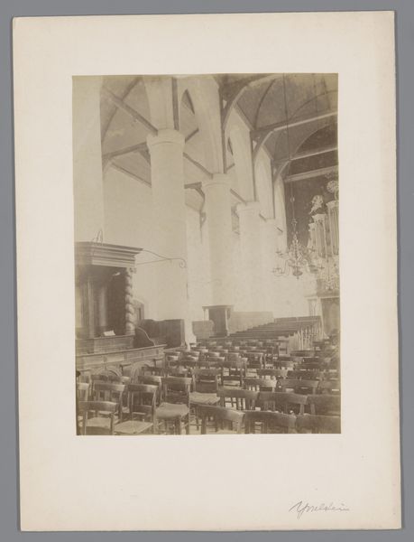 This photograph captures the interior of the Oude Onze-Lieve-Vrouw Visitatiekerk in Budel. The image, created by an anonymous photographer from Monumentenzorg, freezes a moment imbued with both the solemnity of religious space and the socio-political contexts of its time. The photograph presents a serene view of the church's interior, punctuated by rows of simple wooden chairs facing the altar. The photograph invites reflection on the role of the church as a site of both personal devotion and communal identity. In the historical context, churches were central not only to spiritual life but also as community hubs, influencing social norms and power structures. The photograph offers a glimpse into the church's role in shaping local identity, both preserving and reflecting the values and structures of its community.