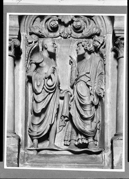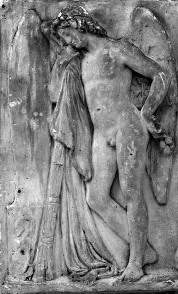 Hermann Ernst Freund made this plaster relief, "Pomona," in the early nineteenth century. Plaster is a humble material, of course, but it has a long and important history in sculpture. It allowed artists to translate their designs from clay models into durable forms, ready for transfer to more prestigious media like marble or bronze. Here, we see the goddess Pomona rendered in this unassuming material. Look closely at the flat, matte surface, which absorbs light and gives the figure a soft, ethereal quality. Note also how the plaster captures the intricate details of the drapery, the grapes, and the vine itself. Think about the labor involved in producing this relief. Freund would have first sculpted the design in clay, then created a plaster mold. Finally, he would have cast the relief, refining the surface with chisels and rasps. This step-by-step process democratized sculpture to some extent, making it more accessible than carving stone or casting bronze. Though the result is more than just a placeholder, this Pomona reminds us of the means of production that underly all artistic creation.