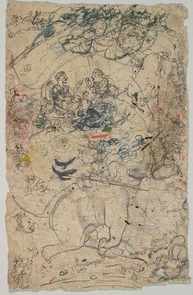 Editor: Here we have Qiu Ying's "Scroll illustrating The Heart Sutra" from 1543, made with watercolor. The subdued colors create a delicate and detailed scene. What strikes you about this piece? Curator: I am interested in the material conditions of its creation and consumption. Notice the texture of the scroll itself, likely silk or a similar fine fabric. Consider the labor involved in preparing the materials, grinding pigments, and the meticulous application of watercolours to depict this narrative. What social class would have had the leisure to create or to acquire such an item? Editor: So, it's less about the figures themselves, but how the materials used point to a particular context? Curator: Exactly. Think about the cost of the pigments. Were these locally sourced, or imported? Each decision shapes meaning. The act of illustrating the Heart Sutra was more than mere devotion; it was also an economic act of conspicuous artistic production, pointing toward power relations inherent to religious display and ritual practices. This piece shows a culture of the art world as tied up with materials production. What does that reading bring for you? Editor: It makes me consider who *doesn't* have access to artmaking, both then and now. How do these economic limitations shape what stories get told through art? Curator: Precisely. Even the act of preservation raises questions. What resources are needed to protect such a fragile object over centuries, and who controls access to that history? These questions shape our understanding beyond aesthetic pleasure. Editor: That focus on materiality has made me see the scroll as less of a devotional object and more of a commodity entangled with class and access. Curator: Exactly. Hopefully it provokes some fruitful critical discussions of how artwork is received depending on the time!