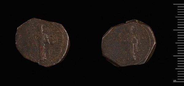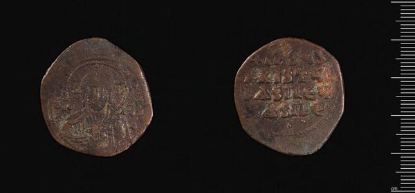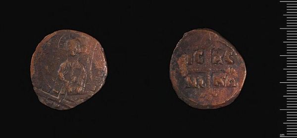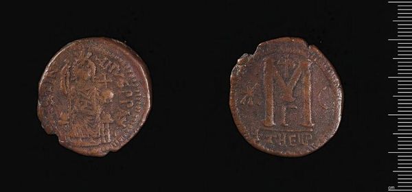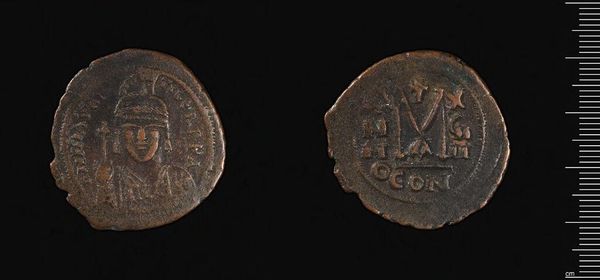 This bronze follis was produced during the reign of Maurice Tiberius, who ruled the Byzantine Empire from 582 to 602 AD. As currency, the follis underpinned not only the Empire's economy, but also its systems of power and representation. The coin features an image of Maurice, the Emperor, adorned with a crown, thus emphasizing his divinely sanctioned authority. On the reverse, the symbol of value reflects the economic standards of the time, but also alludes to the socio-political structures that determined wealth and status. Consider how this small object embodies the complex intersection of political power, economic systems, and personal identity. Coins like this one remind us that even the smallest artifacts can reveal the larger societal narratives that shape our world.