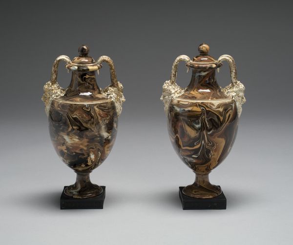 These silver pomade pots were crafted by Thomas Jenkins around the turn of the 18th century. The eye is drawn to their symmetrical form, enhanced by the detailed floral engravings that wrap around each vessel. The octagonal lids, each topped with an avian figure, introduce a geometric contrast to the organic motifs below, creating a balanced yet dynamic composition. Consider how Jenkins employs the material itself. The reflective surface of the silver captures light and shadow, emphasizing the crispness of the engraved lines and the precision of the vessel's shape. These objects invite us to consider the interplay between utility and artistry. The contrast of angular lids with the rounded forms creates a semiotic dialogue, maybe reflecting the era’s shift from rigid courtly customs to a more nuanced expression of personal style. The floral engravings serve as codes, referencing both nature and cultivated beauty, speaking to a society that valued both. It’s not just their function, but their presence as symbols of a changing world that truly intrigues.