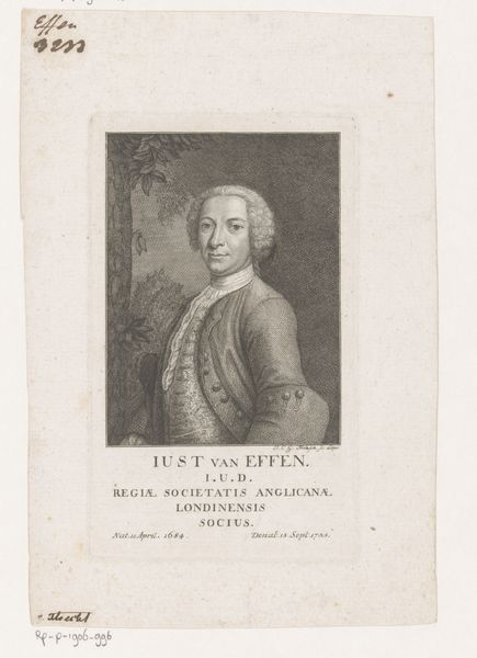 This is Jonas Haas’s portrait of John Taylor. It is a print, distinguished by the stark contrast and meticulously engraved lines. The composition presents a bust of Taylor set atop a pedestal, creating a formal, almost sculptural presence. The use of line is particularly striking. Haas employs dense hatching to model the textures of Taylor’s coat and wig, contrasting with the smoother surfaces of the face and pedestal. This contrast serves to emphasize the materiality of the textures while creating a sense of depth and volume. The inscription on the pedestal functions as both a formal element and a semiotic device. It frames Taylor as a figure of medical and societal importance, thereby imbuing the image with layers of meaning and cultural context. The artwork functions beyond mere representation; it is a statement about status, knowledge, and the public role of influential figures. The print invites us to consider how form and content intertwine to create meaning.
