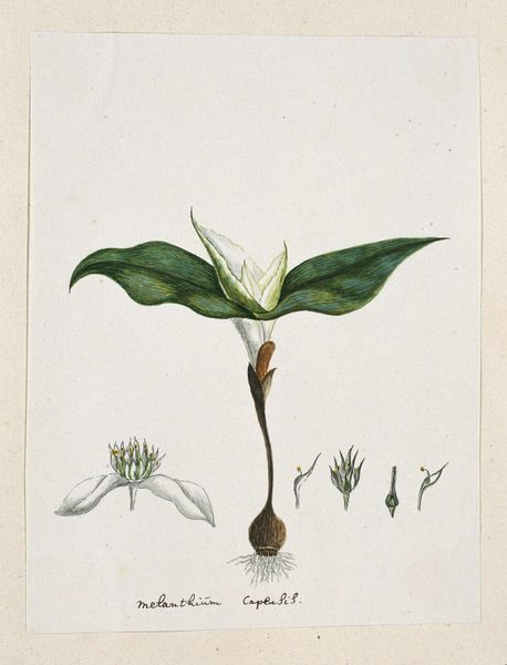 Editor: This print, "The Lyon Lizard," or *Lacerta 6-lineata*, is attributed to Mark Catesby and dates back to the early 18th century. The watercolor and print work on toned paper feels almost… delicate. What do you see in this piece that I might be missing? Curator: I see a world of embedded symbols. Catesby presents us with more than just a lizard and a plant. Consider the lizard itself. In many cultures, lizards are symbols of regeneration and adaptability, creatures that thrive in diverse environments. What does that suggest to you in the context of, say, colonial exploration, where adapting to new environments was key? Editor: It's like a visual representation of resilience. And the plant, how does that fit in? Curator: The plant adds another layer. Its form, seemingly an orchid, speaks of beauty, but also of exoticism, of nature encountered and classified in a new land. What about the very act of depicting it – a European artist capturing the flora and fauna of the Americas? Editor: So it's about more than just pretty pictures, it’s about power dynamics and cultural exchange? Curator: Precisely. Each element holds a cultural memory, a whisper of the past that resonates even today. It's interesting to think about what Catesby chose to depict and, just as importantly, what he left out. Editor: That gives me a lot to consider! I definitely look at it differently now, knowing more about the symbolism. Curator: Indeed. The power of imagery lies in its enduring ability to reflect and shape our understanding of the world.