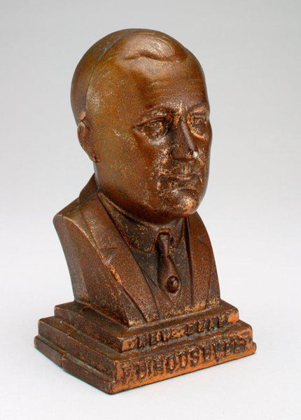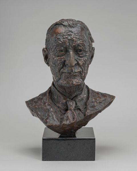 Milița Petrașcu sculpted this bronze portrait of Constantin Doncea, capturing the essence of a collector. The bust, reminiscent of Roman portraiture, evokes a sense of timeless authority and enduring legacy. The most poignant detail is the subject's gaze. Looking away, seemingly into the distance, it brings forth a melancholic meditation, as if Doncea is contemplating the ephemeral nature of existence. Consider how, throughout history, rulers and thinkers alike have been immortalized in a similar style, their likenesses meant to transcend the boundaries of mortality. Think of the Roman emperors, their marble busts projecting power and wisdom. Observe, too, how the tradition of the portrait bust carries forward, subtly shifting in tone and emphasis, echoing humanity’s continuous dialogue with itself and with the past. This sculpture serves as a vessel for cultural memory, reminding us that images are not static entities.