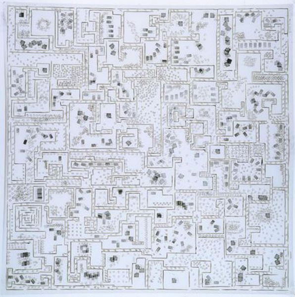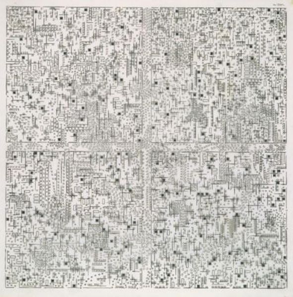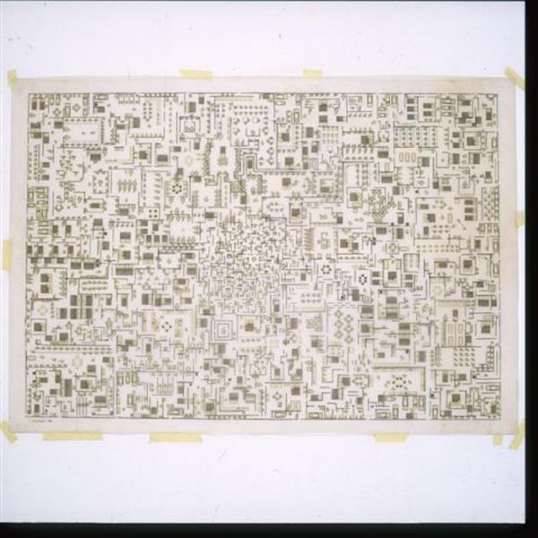 Curator: This is León Ferrari's "Stair," a work whose date remains unknown. It resides here at the Tate. Editor: My first impression is disorientation. The meticulousness of the linework almost overwhelms. Curator: Ferrari's work often challenged power structures. One must consider the socio-political context in which he was working. Editor: And the relentless detail! Consider the labor involved in producing such a drawing, and how it mirrors the endless climb. Curator: Absolutely, especially when thinking about how the architecture of institutions can either facilitate or restrict social movement. Editor: I find myself wondering about the type of pen and the surface of the paper itself, as tools mediating this intricate, political statement. Curator: The starkness emphasizes the symbolic maze of social mobility. Editor: It is interesting to reconsider line, the material of the drawing, and its symbolic role as a confining boundary. Curator: Viewing it this way certainly gives depth to the artist's intention. Editor: Precisely, and the material tells us a great deal about the artist's process.