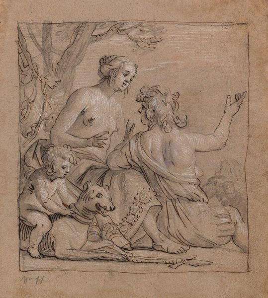 Bernaert de Rijckere made this drawing, "Venus Beweent de dode Adonis," with pen and brown ink, and brown wash, probably in the late 16th century. It depicts a scene of mourning, rich with cultural and historical associations. Originating from the Netherlands, this piece reflects the period's interest in classical mythology and allegorical themes, popular among the educated elite. The image presents Venus lamenting the death of Adonis, a narrative drawn from ancient Greek sources. Such subjects not only showcased the artist's knowledge but also served as moral lessons or reflections on human fate. In this historical context, the choice of subject, combined with the drawing's style, suggests an intellectual and social environment deeply rooted in the traditions of the Renaissance. It is this artistic creation that invites us to consider how historical understanding informs and enriches our encounter with art. Delving into archival sources, literary texts, and art historical scholarship further illuminates the artwork's place within its cultural landscape.
