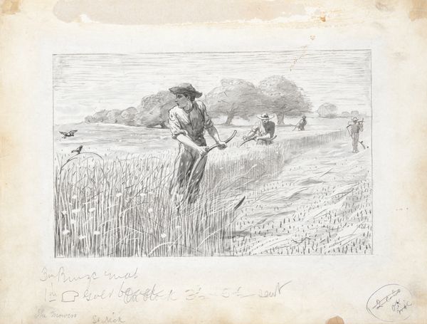 Winslow Homer made this wood engraving, "The Strawberry Bed", in the United States. The image depicts three figures, likely a family, engaged in the labor-intensive task of harvesting strawberries. The work offers insight into the economic activities and rural life of the time. Homer's choice of subject matter reflects a broader cultural interest in agrarian life and the representation of everyday labor. But the image also touches on the complex social dynamics of labor and leisure in post-Civil War America. Consider the historical context: the rise of industrialization, urbanization, and changing social structures all influenced how people viewed agricultural work. Looking at publications from the period, such as newspapers and magazines, alongside Homer's biography, we can understand more about his social position and artistic decisions. The meaning of art is always rooted in its time.