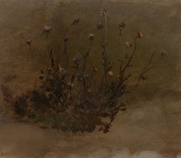 Curator: Fidelia Bridges painted this watercolor, titled "Daisies in a Meadow," that is part of the collection at the Harvard Art Museums. Editor: The initial vibe is quiet observation... very humble. It's like I’m peeking at a little patch of sunlight. Curator: Bridges was a prominent 19th-century American watercolorist. It's interesting to note how her work challenges the traditionally masculine landscape genre by focusing on these intimate, often overlooked, natural scenes. Editor: Yes, there’s a kind of feminist softness in the way she spotlights the wildflowers. It feels like an invitation to slow down and notice the small wonders. It's so gentle. Curator: Her botanical accuracy was highly valued in her time. These paintings were also used for illustrations in books, offering the public a look into the delicate beauty of the natural world. Editor: It’s almost scientific, yet it’s also so personal. I feel like I've walked through a field and seen this exact same flower patch. I adore that kind of connection. Curator: Indeed, Bridges’ skill lies in merging scientific precision with an intimate, almost poetic sensibility. Editor: Absolutely. It leaves you feeling refreshed and grounded.