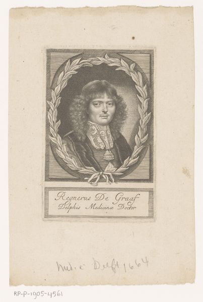 Editor: Here we have a rather intriguing intaglio engraving from 1745, titled "Portret van Jean Jouvenet," created by an anonymous artist and held at the Rijksmuseum. I’m immediately struck by the sitter’s wig— it just dominates the image! How would you interpret this piece? Curator: Indeed, the wig is significant! These portraits were often commissioned or created to circulate within specific social spheres. The wig itself is not just fashion; it's a symbol of status, intellectualism, and belonging to a particular elite. Considering that this is an engraving, intended for wider distribution than a unique painted portrait, what kind of message do you think it's meant to convey to its viewers? Editor: That's interesting! So it’s less about Jean Jouvenet as an individual and more about what he represents to society. Perhaps it's meant to elevate his status and connect him with power. Is there a political dimension? Curator: Precisely! Think about the function of art during this time. Portraits of this nature acted as visual endorsements of an individual’s place within the complex hierarchies of the period. How would it have impacted public perceptions and the patronage systems in place? It’s all very interlinked. Editor: So, understanding the social context transforms this portrait from just a likeness into a political statement almost. The choice of an engraving also suggests wider accessibility for this message, interesting. Curator: Exactly! Consider also how prints are often collected and placed in albums with particular narratives and messages and we need to remember these nuances to truly grasp what they signified back then. Editor: Fascinating. I’ll definitely look at portraits differently from now on. Thank you!