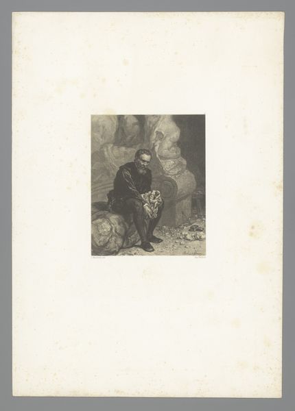 Frederick O. Bemm created this reproduction of a painting by Albert Neuhuys, and it now resides in the Rijksmuseum. The photograph presents a scene cast in soft sepia tones, immediately evoking a sense of nostalgia. The composition centers on two figures; an adult and a child, closely intertwined, their forms gently illuminated against a shadowy background. The artist employs a limited tonal range, which serves to flatten the space and focus attention on the subjects’ interaction. Bemm uses photography to explore the interplay between light and shadow to achieve a pictorial effect. It’s worth considering how Bemm manipulates the photographic medium to not merely replicate but interpret Neuhuys’ original painting. In this context, photography becomes an act of translation, altering the texture and materiality of the original work. Consider how this approach challenges our conventional understanding of the photograph as a tool for objective documentation. Rather, it’s a medium through which a new aesthetic and conceptual dimension can be created.