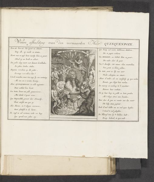 Editor: Here we have "Hollands antwoord op Hollands treurtoneel, 1673", or "Holland's Response to the Dutch Theater of Misery, 1673" by Romeyn de Hooghe. It's an engraving on paper, currently residing at the Rijksmuseum. Looking at the busy composition and somewhat satirical tone, I'm curious, what do you see in this piece from a historical perspective? Curator: It's a powerful piece of propaganda. De Hooghe was a master of etching and political commentary, and this work embodies the fraught relationship between the Dutch Republic and France during the Franco-Dutch War. Think about the context: the Dutch Republic was under immense pressure, facing invasion, and this print is essentially rallying the troops, using imagery to depict Dutch resilience against French aggression. Look at how Justice is presented, seemingly undermined and in distress. What message do you think De Hooghe is sending by positioning Justice in such a state? Editor: That is something I didn't initially notice. By depicting Justice in such disarray, almost powerless, does that suggest that the conventional systems of fairness and governance were failing or being corrupted during the war? Curator: Precisely. It reflects the anxiety and disillusionment prevalent at the time. Also, consider who this image was *for*. Prints like these circulated widely; they were a form of mass communication, shaping public opinion. What do you imagine the impact would be on someone seeing this in a public setting? Editor: I suppose it would be quite persuasive, invoking feelings of patriotism and potentially fueling resistance against the French. It served a direct political purpose, beyond just being aesthetically pleasing. Curator: Exactly! This is where the political agenda comes into play. Art as a vehicle for socio-political messaging. Studying such work encourages me to remember to always consider artwork not just as objects of aesthetic value, but as important testaments of collective historical narrative and propaganda. Editor: That makes perfect sense. Thank you! Considering art in the framework of the socio-political forces acting upon it helps give another depth to the piece, making art viewing all the more rewarding.