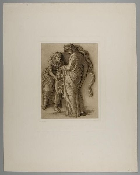 Editor: This is Moritz Steinla's Pietà, from the Harvard Art Museums. It's incredibly moving, but also seems to reinforce traditional gender roles in its depiction of grief. What's your interpretation? Curator: It's fascinating how Steinla reproduces established iconography. How does it serve to reinforce or subvert social power structures of the time? Consider the Madonna figure, her sorrow, and how that's been used to uphold certain ideals of womanhood. Editor: That's a good point; the focus on Mary's suffering almost overshadows Christ's sacrifice, doesn't it? Curator: Precisely! By centering her pain, the artwork perpetuates a narrative of female passivity and sorrow as the defining characteristic of women. Editor: I hadn't thought about it that way. Thanks for highlighting the gender dynamics at play here. Curator: Absolutely! Art is never neutral. Exploring these dynamics helps us unpack its impact.